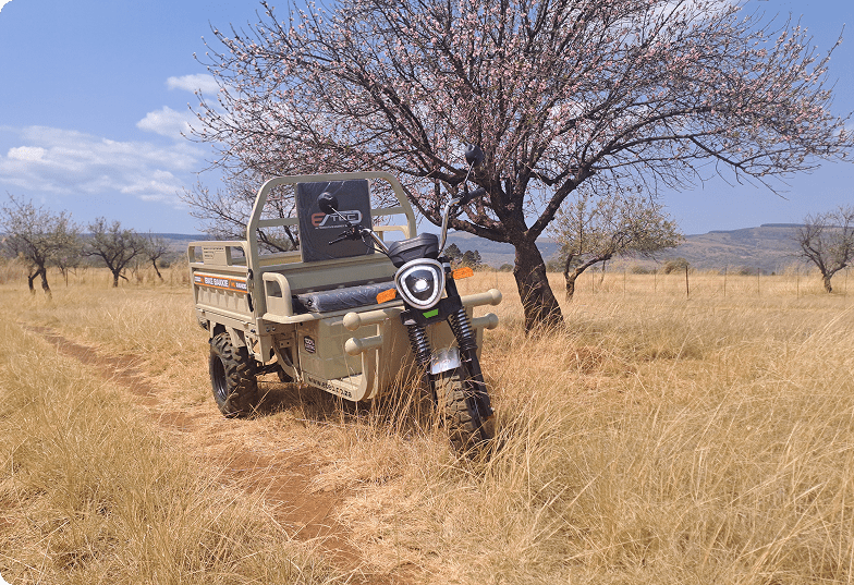 From our well-known Bike Bakkies and utility EVs to our roadworthy Vmoto scooters, lithium batteries, and conversion options, we provide a complete ecosystem of electric transport solutions for farms, estates, hospitality, businesses, and everyday riders.