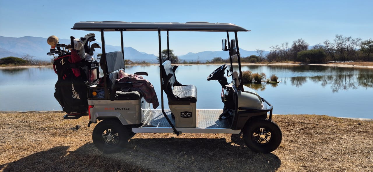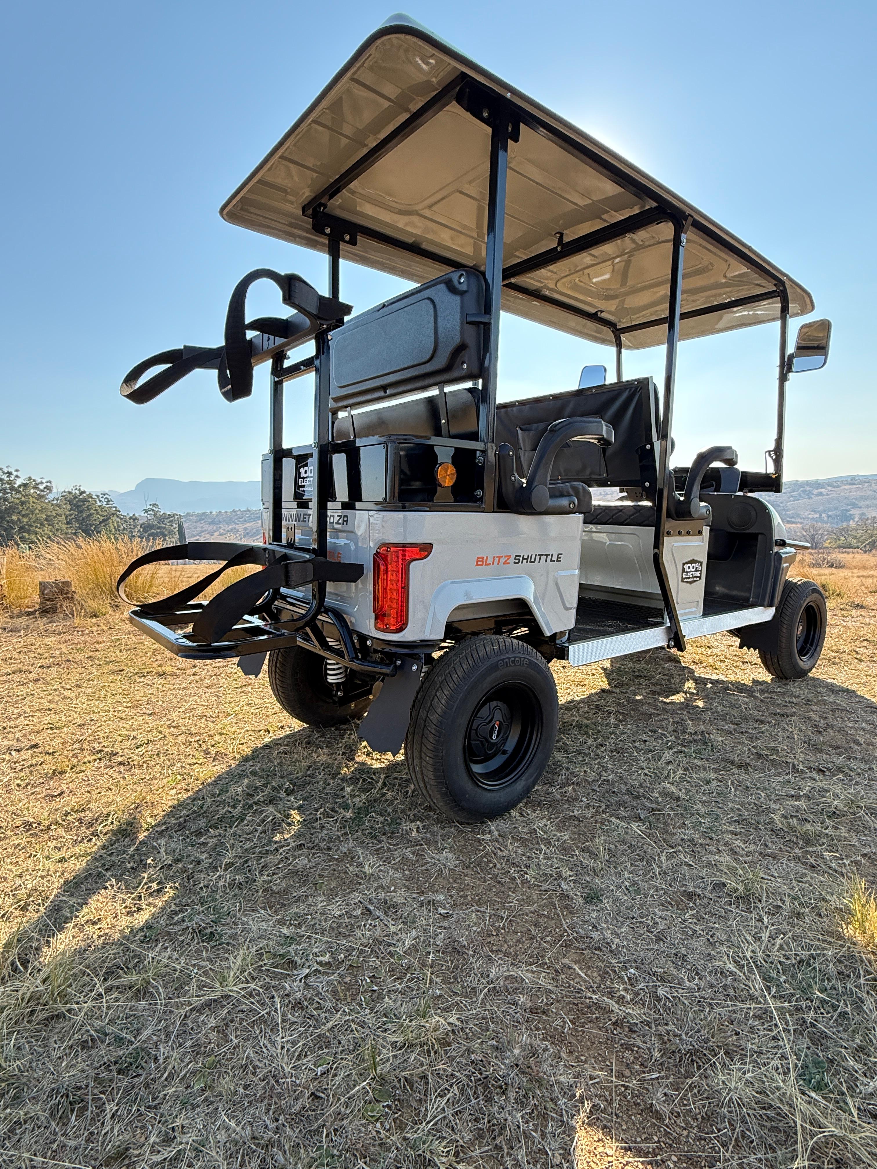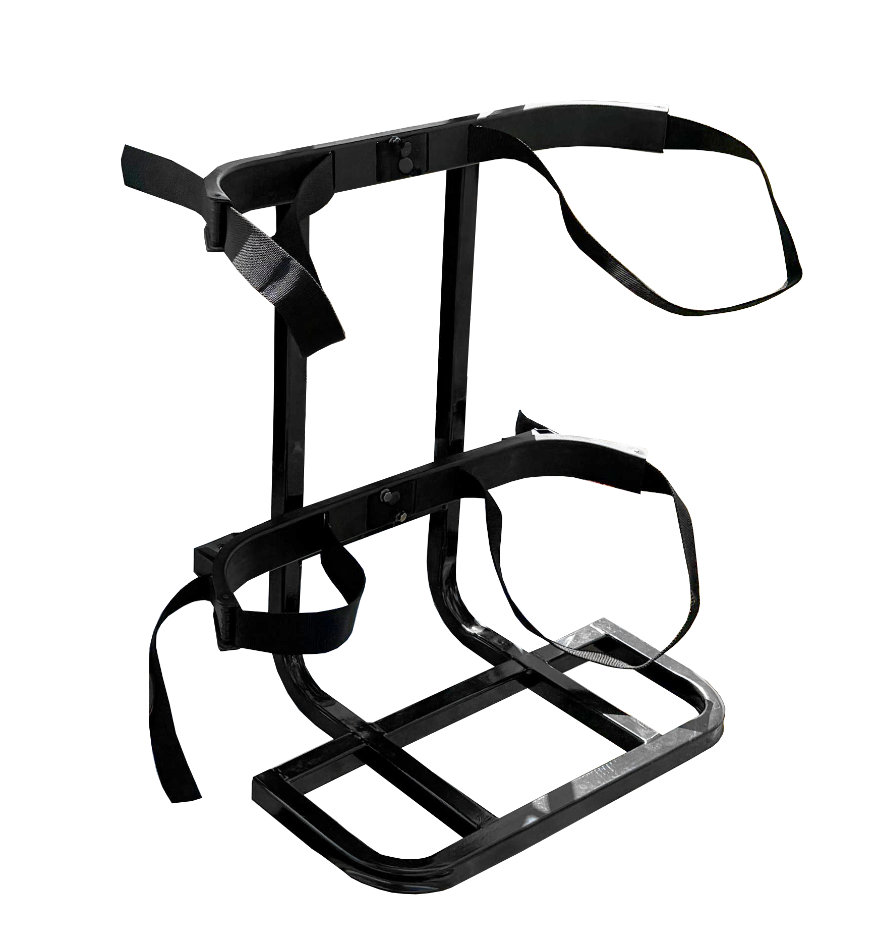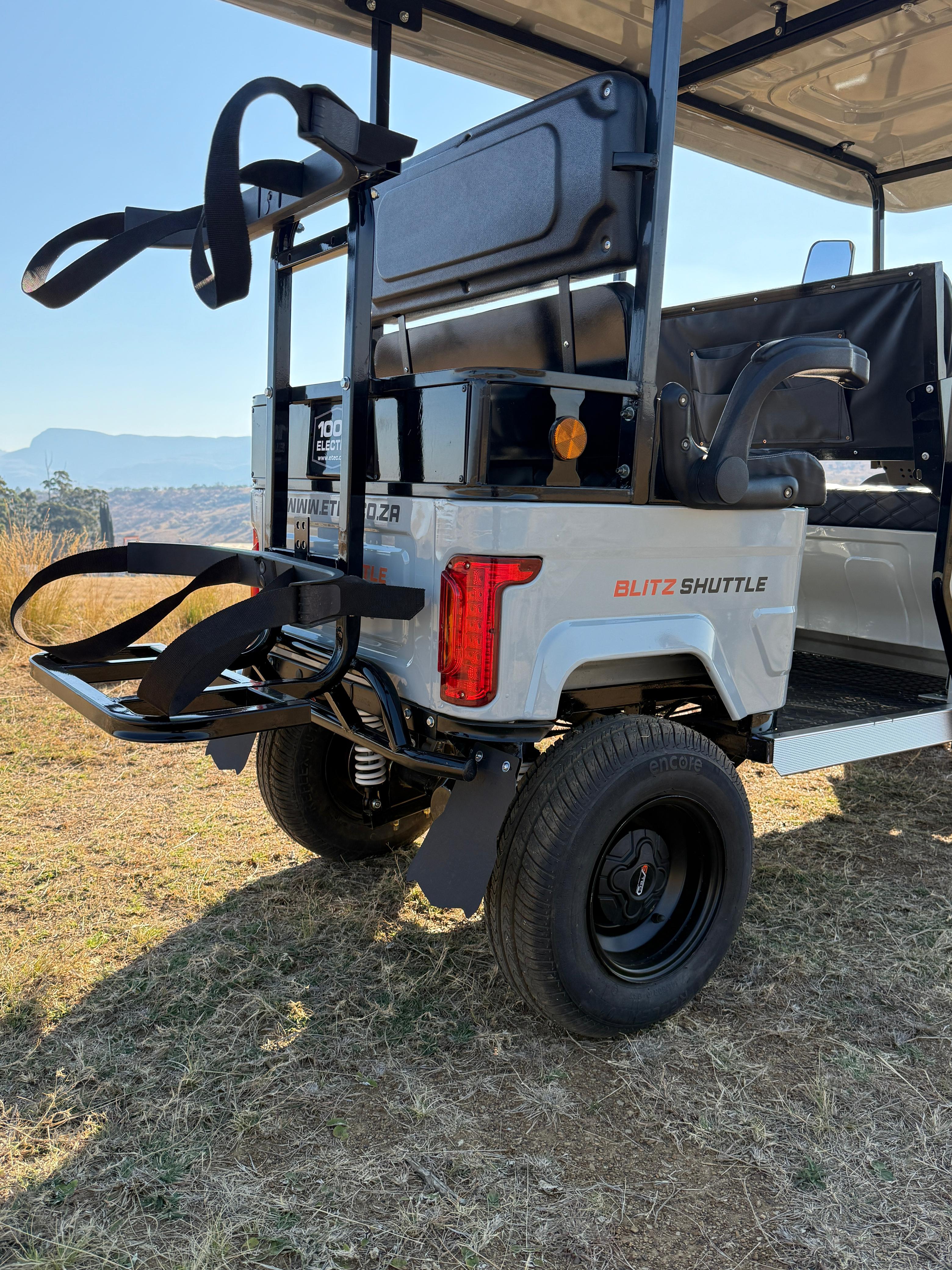 Convenient and practical, golf bag holder can hold two golf bags. The holder is fixed to the back of the Etec Shuttle or Glide models to add both personalization and function.